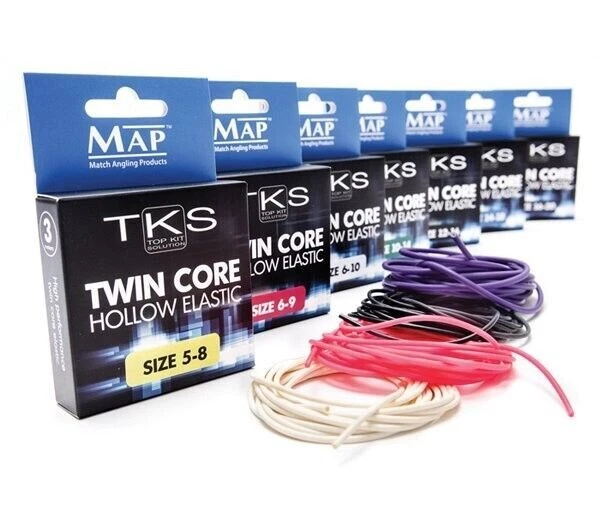 Extremely durable, and favoured by many of the UK’s top anglers, TKS Twin Core Elastics is available in seven different sizes to cover all situations. The transparent inner core ensures the elastic retracts faster than standard solid elastics, and the coloured outer gives it an incredible stretch ratio. Each packet contains a 3m length of elastic.